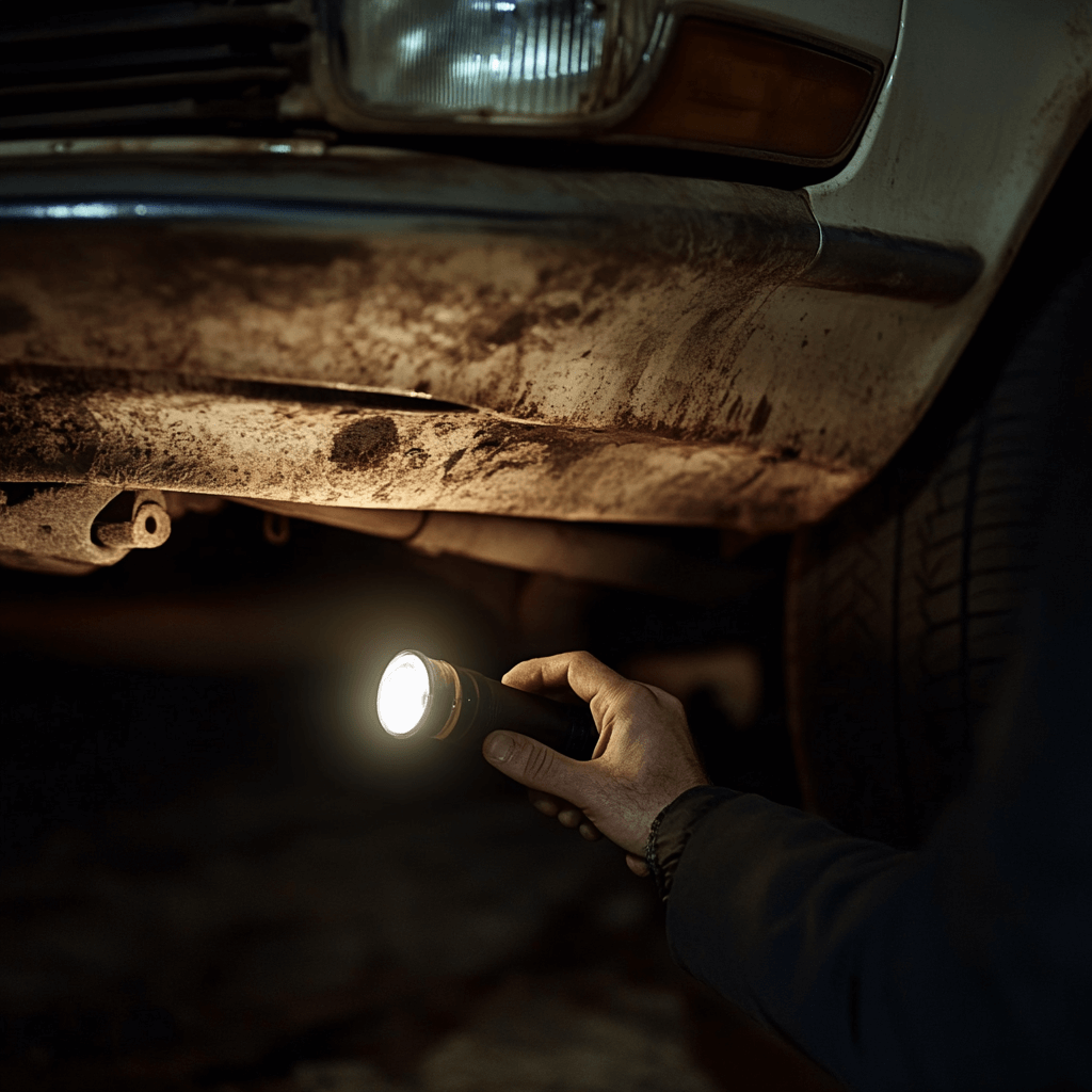 다음은 차체입니다. 문짝이 달랑달랑하진 않은지, 문을 열고 닫을 때 소리가 깔끔한지 주의 깊게 들어보세요. 휠 얼라인먼트도 잊지 마세요. 운전대를 돌렸을 때 바퀴가 부드럽게 움직이나요? 그리고 언더바디는요? 녹이 심하게 슬어있진 않은지, 오일이 새고 있지는 않은지 살펴보세요.