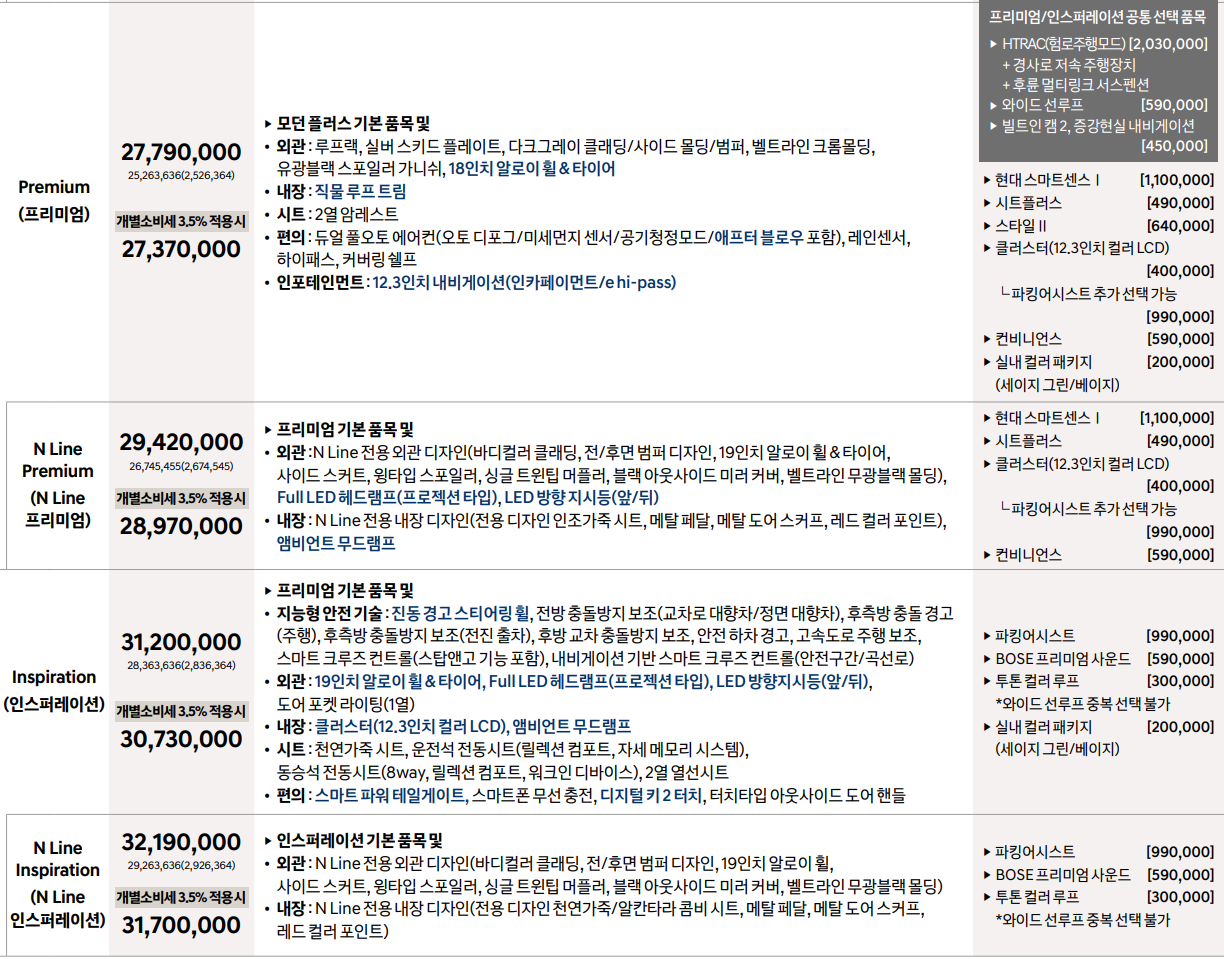 '국산차 가격 · 옵션 정보 > 현대자동차' 카테고리의 다른 글